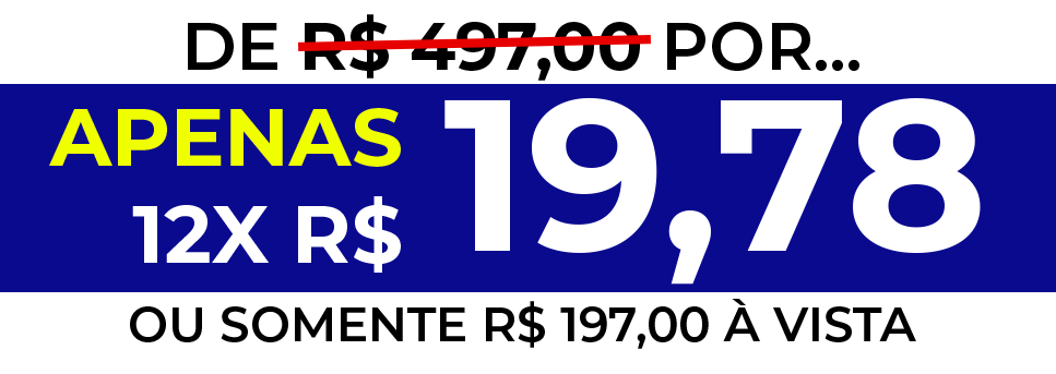 Com o desconto o curso fica por apenas R$ 97,00 porém são vagas limitadas e depois que acabam o valor volta para R$ 135,00 Lembrando que o aluno só paga a inscrição e tem direito ao curso completo sem precisar pagar qualquer outra taxa